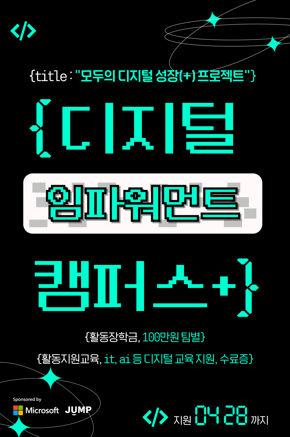 마이크로소프트의 후원으로 진행하는 <디지털 임파워먼트 캠퍼스+>는 AI와 같은 새로운 디지털 기술을 배우고, 지역사회에 배운 지식과 경험을 나누며 함께 성장하는 디지털 [교육+나눔] 프로젝트입니다.